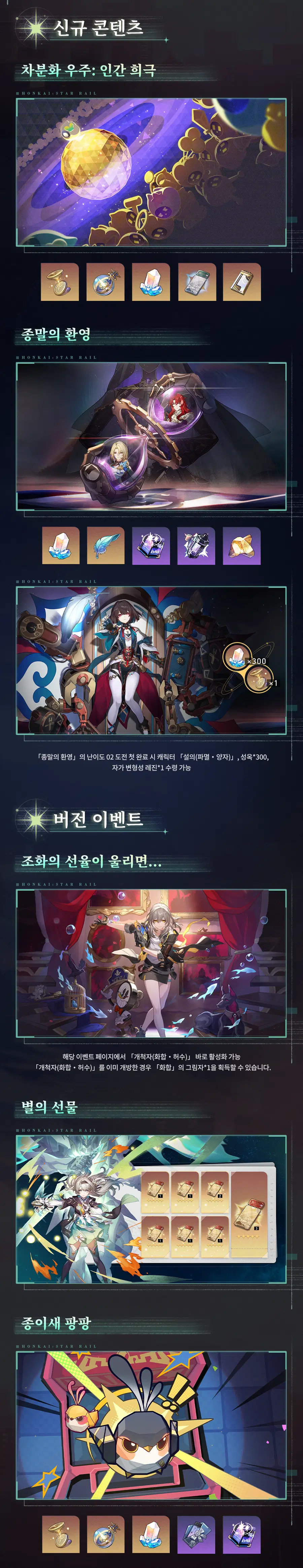 | 붕괴 스타레일: 2.3 버전 이벤트 캘린더 (0) | 2024.06.18 |