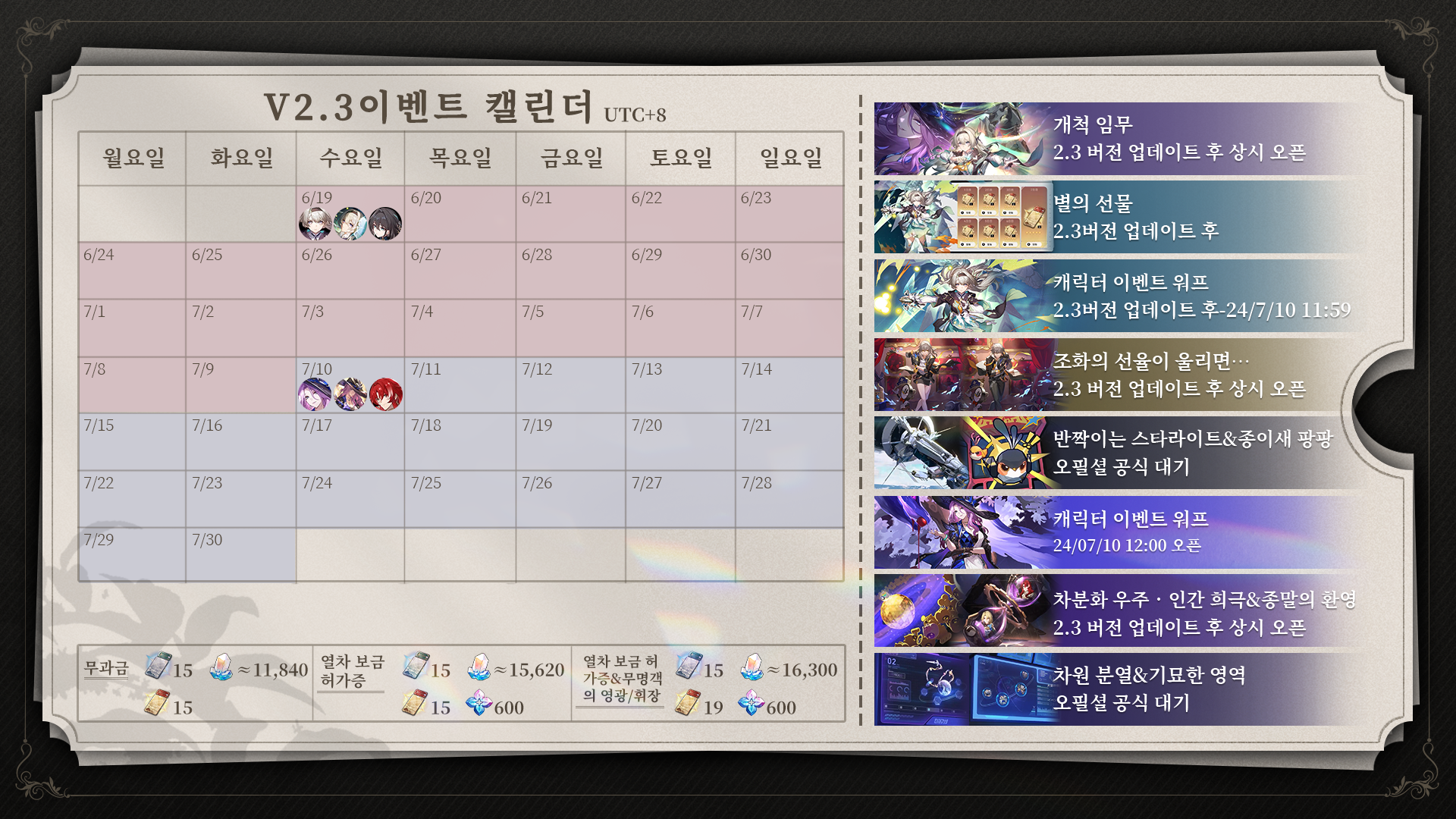 붕괴 스타레일: 2.3 버전 이벤트 캘린더게임/붕괴: 스타레일 - 정보 및 자랑2024. 6. 18. 13:58